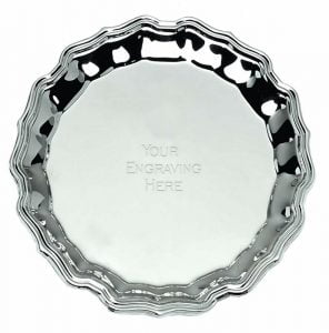 Browse the range of salvers or nickel plated trays available at Top Trophies North. There is a variety of different styles, shapes and sizes. The salvers range of simple designs to a more detailed design, such as the Ascent and the Chippendale.