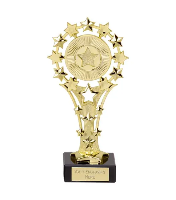 Rising Star Gold Trophy On A Black Plastic Base Description