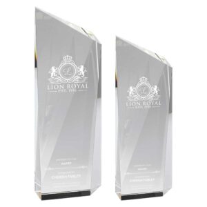This piece of glass is detailed with a metal laurel wreath which can be personalised with any club badge or company logo. Complete the award with an engraved plate containing up to 4 lines of text and Voila, you have a completely unique award!