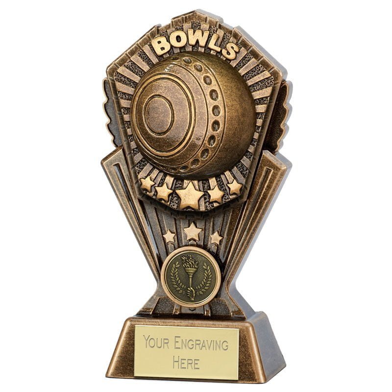 These awards are a range of resin trophies, available in a variation of sports and great value for money. This lawnbowls trophy design makes it great value for all achievements.