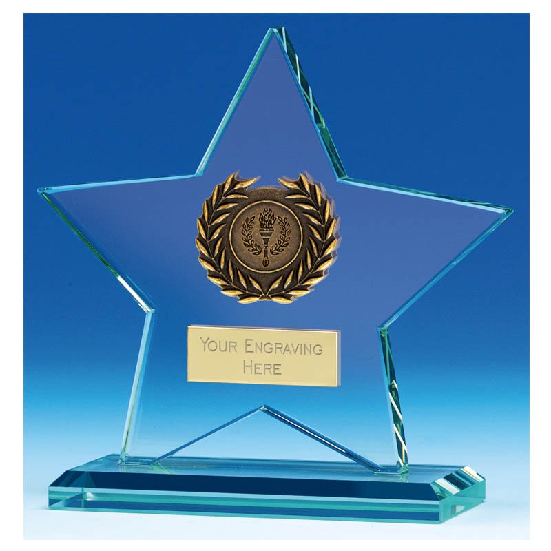This piece of glass is detailed with a metal laurel wreath which can be personalised with any club badge or company logo.