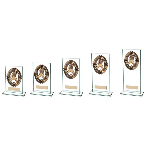Clear glass award with a plastic player on the front. Add text for unique award.