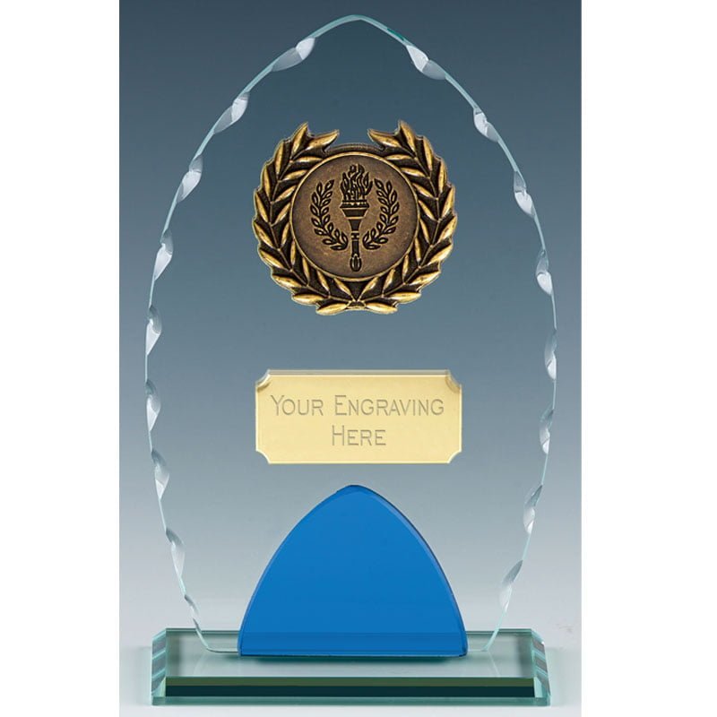 This piece of glass is detailed with a metal laurel wreath which can be personalised with any club badge or company logo. Complete the award with an engraved plate containing up to 4 lines of text and Voila, you have a completely unique award!