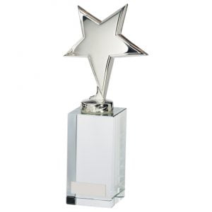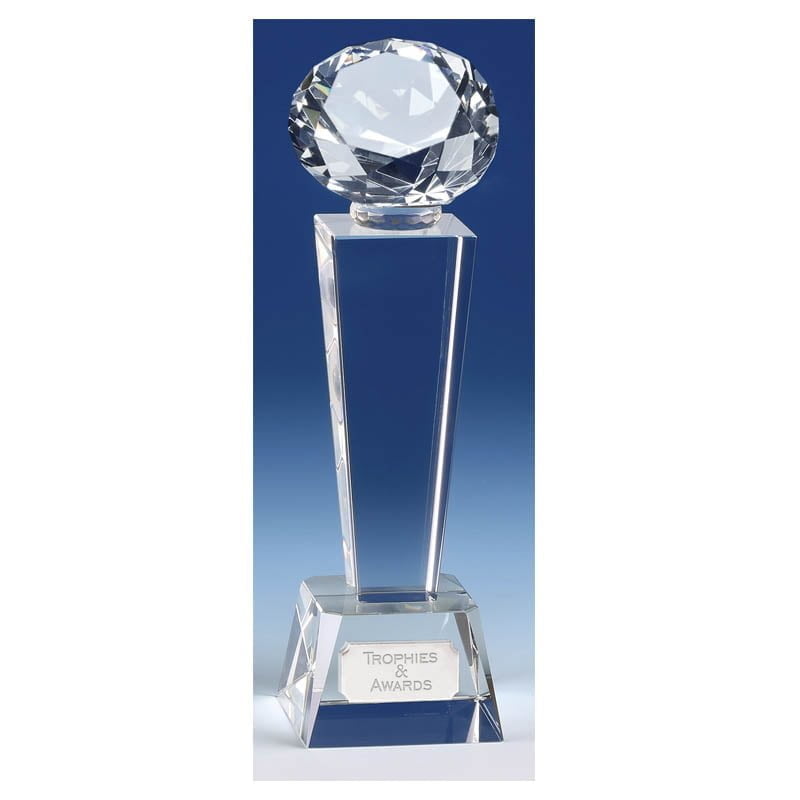This stunning glass trophy is a classy award with a diamond shaped topper making this award perfect for any achievement.