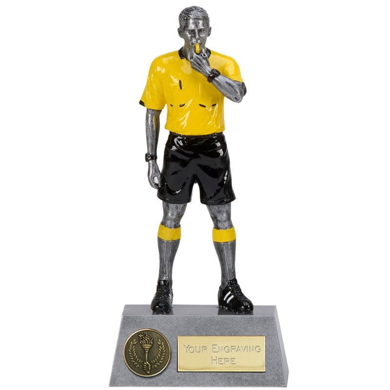Referee holding a whistle.