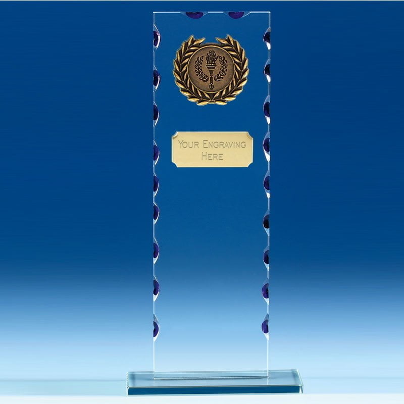 This piece of glass has a laurel wreath design, you able to personalise this with your choice of logo and text.